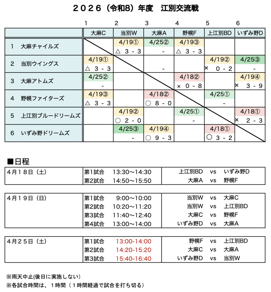 | 上江別BD | 2 | 0 | 0 | 0 | 2 |